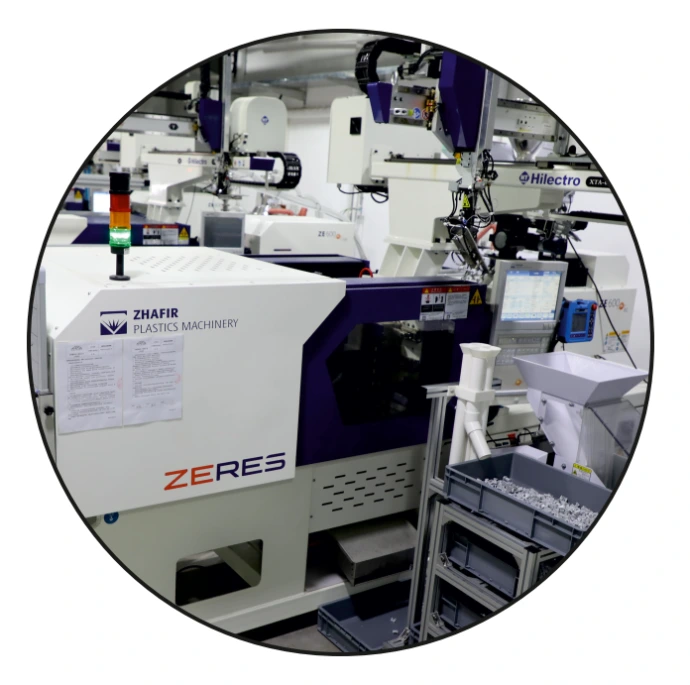 Our in house injection molding department produces technical plastic parts for motors, housings and sensor systems. Efficient tooling, stable processes and high dimensional accuracy ensure dependable quality.